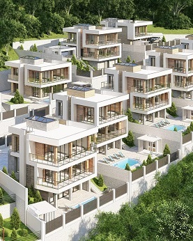 Каждый дом включает в себя все необходимое для приятного отдыха: бассейны и зоны отдыха, ландшафтный дизайн с зелёными газонами и декоративными растениями, парковка для авто и близость к инфраструктуре.