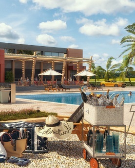 ПРЕИМУЩЕСТВА • Бассейн • Спортивная площадка • Детская площадка • Зона отдыха • Единая архитектура поселка