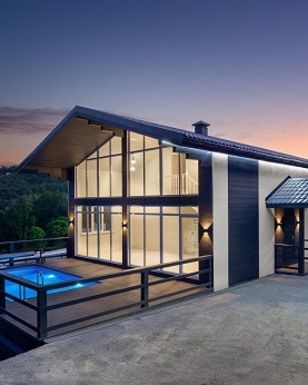 Со всех домов открывается вид на город. Все дома в едином стиле современной архитектуры.