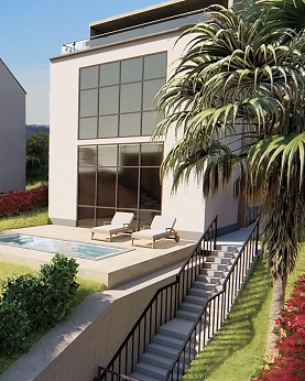Каждый дом включает в себя все необходимое для приятного отдыха: место под бассейн и зоны отдыха, ландшафтный дизайн с зелёными газонами и декоративными растениями, парковка на 2 авто и очень удобные подъездные пути.